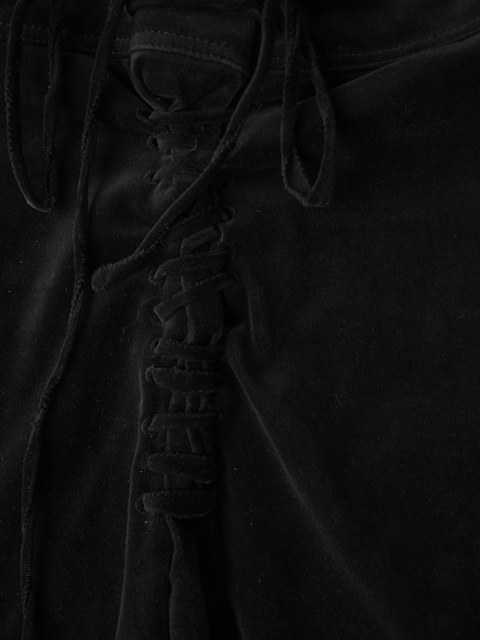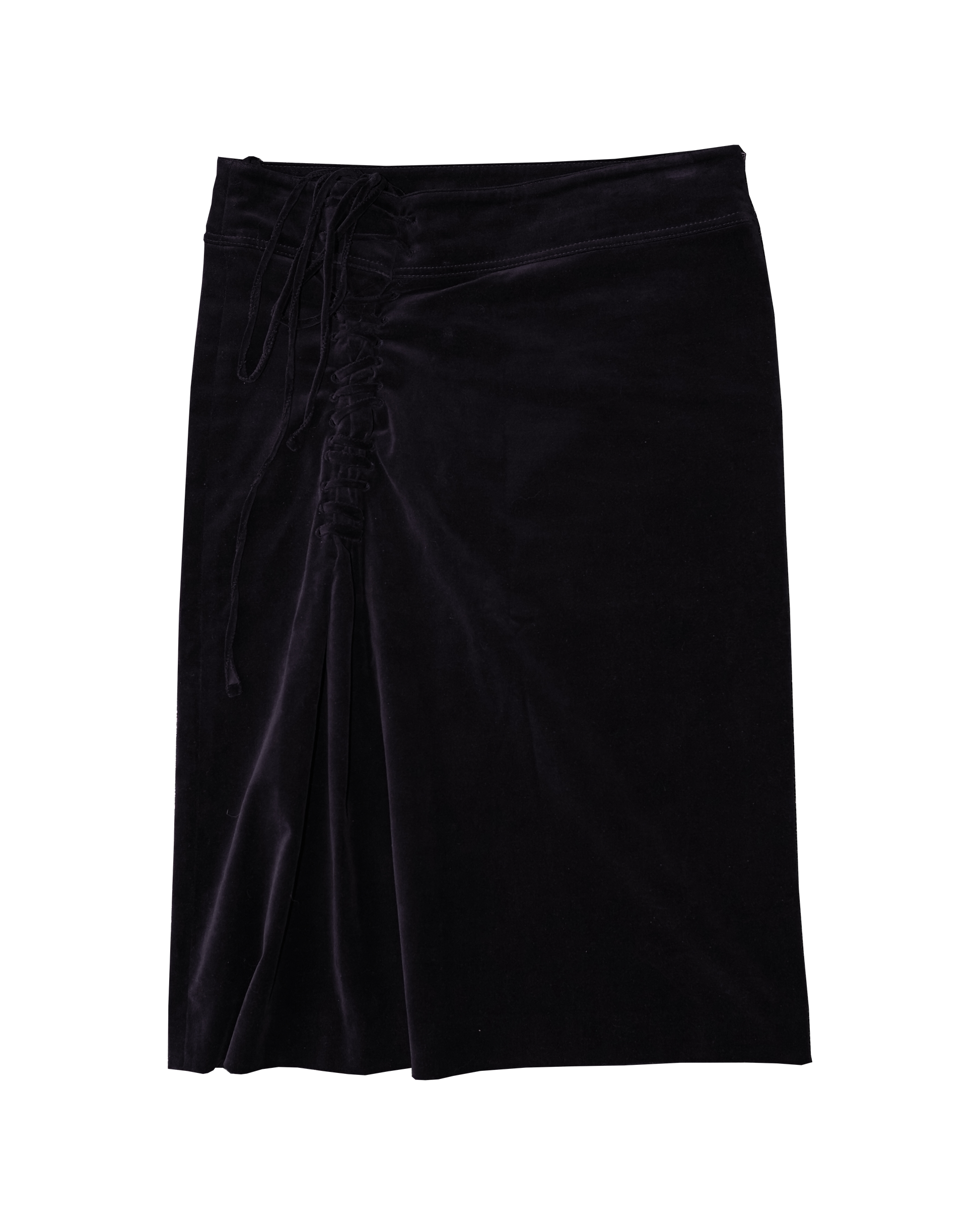 Black velvet FW2002 Gucci skirt, with asymmetrical lace up detail. Tom Ford era Gucci, sleek and sexy.
