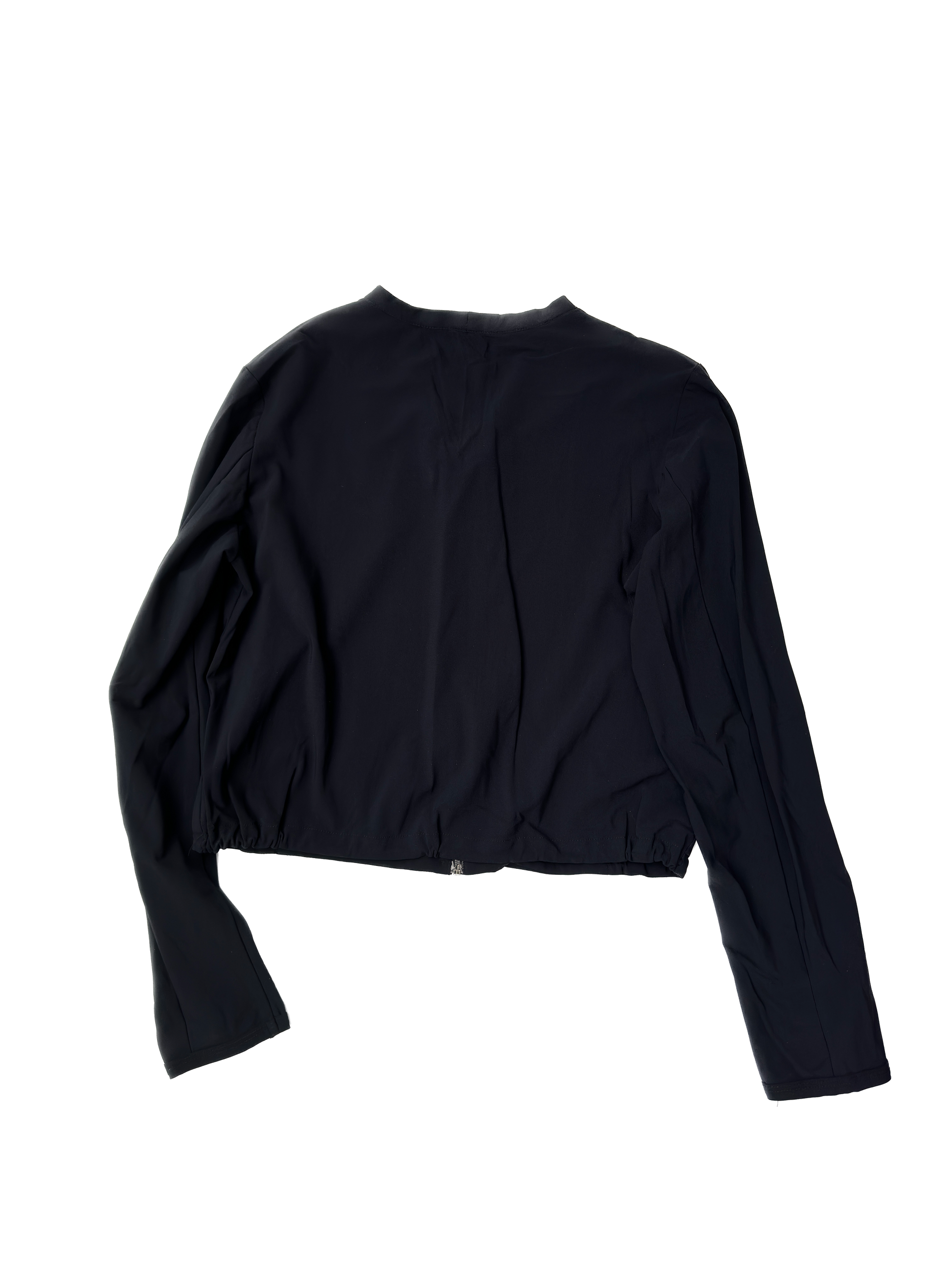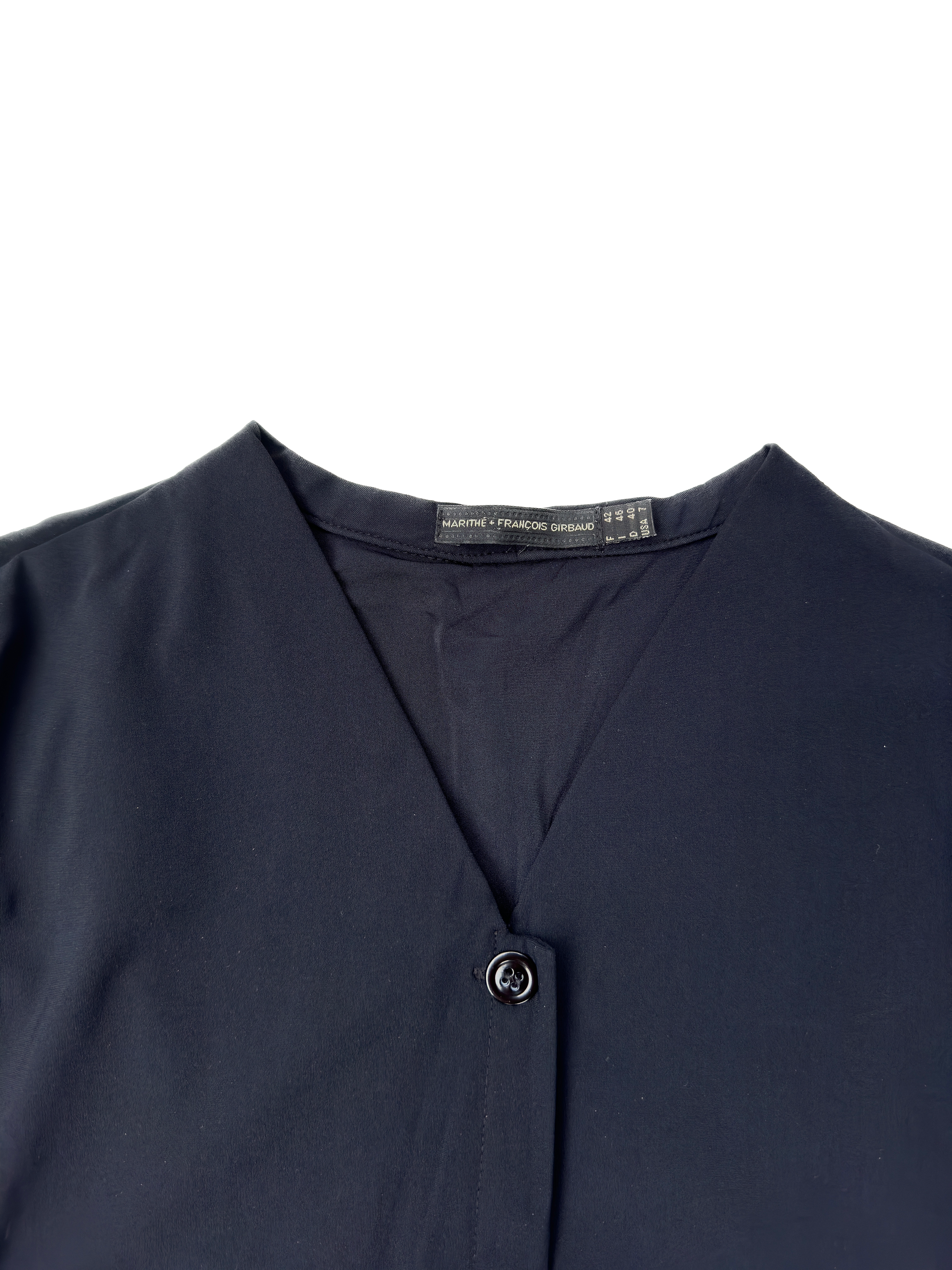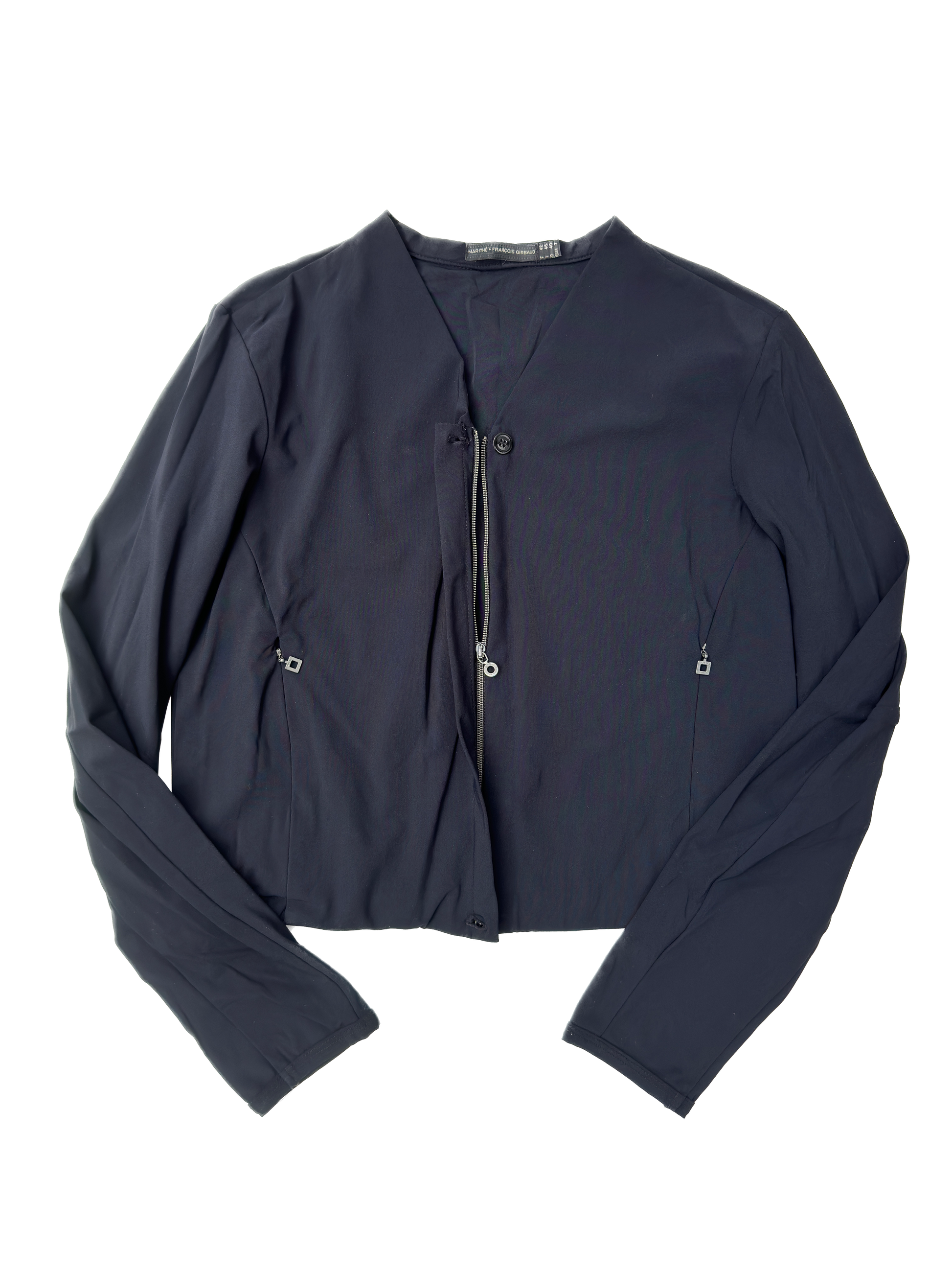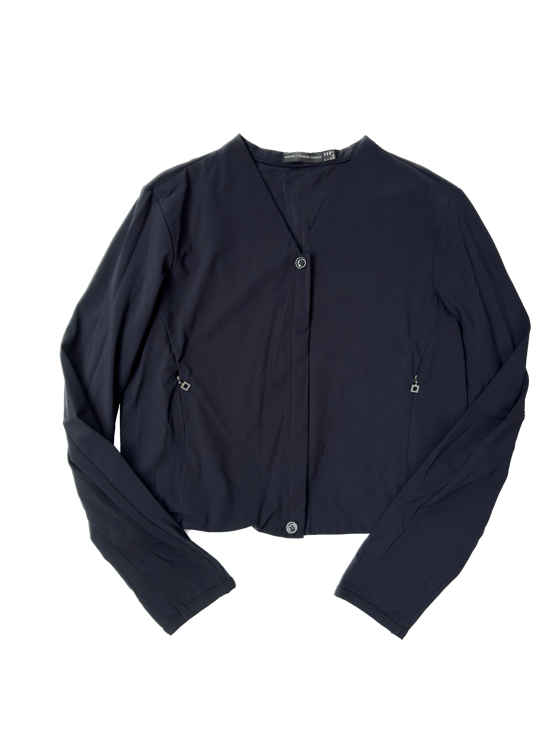 Cropped light jacket from the French brand Marithé + François Girbaud. Black with silver coloured hardware and a hidden zipper.